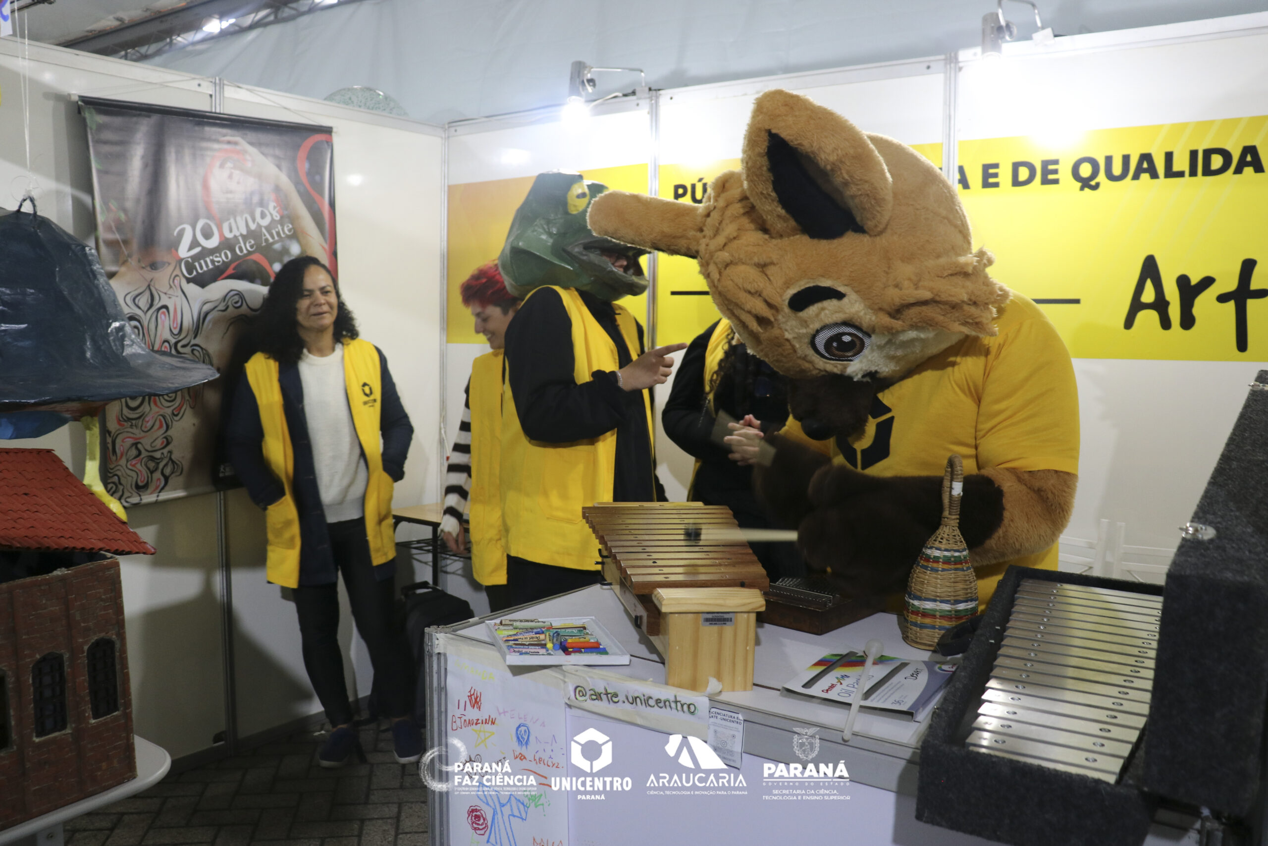 Outro momento importante do dia foi a entrega do símbolo que marca a passagem da sede da edição 2026 do Paraná Faz Ciência para a Universidade do Oeste do Paraná (Unioeste). No próximo ano, o evento será realizado em Cascavel. “Aos nossos colegas da Unioeste, nossa alegria por eles estarem recebendo o Paraná Faz Ciência 2026 e dizer a eles que é muito gratificante receber este evento. Eles verão o quanto vale a pena organizar o Paraná Faz Ciência”, disse o reitor da Unicentro, professor Fábio Hernandes.