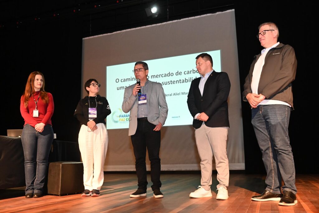 O último dia do Paraná Faz Ciência 2025 nesta sexta-feira (3), em Guarapuava, foi marcado por uma discussão que conecta ciência, economia e meio ambiente: o mercado de carbono. A palestra “O caminho do mercado de carbono: uma jornada pela sustentabilidade”, ministrada pelo deputado federal Aliel Machado, presidente da Frente Parlamentar pela Bioeconomia, abriu espaço para refletir sobre os desafios e as oportunidades da transição ecológica no Brasil.